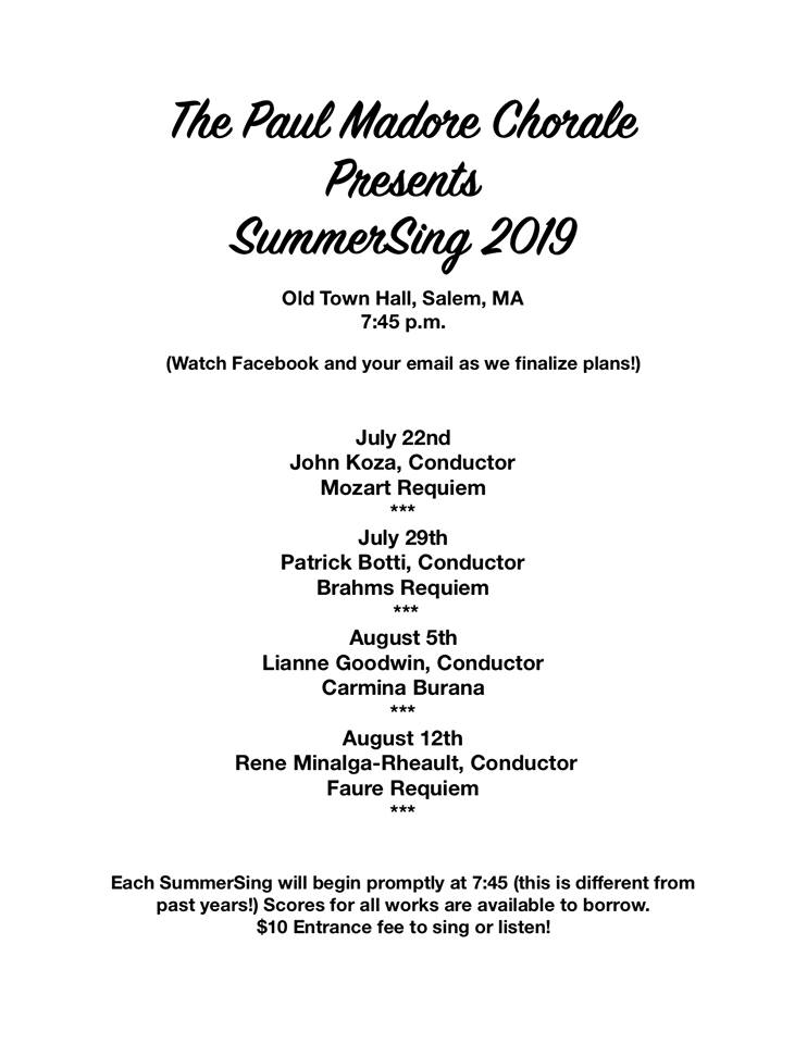 - August 12: Fauré Requiem. Rene Minalga-Rheault, conductor.